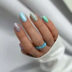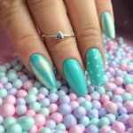 En myk pastellmint gelélakk med frisk og sommerlig karakter. Gir manikyren et lett og forfriskende preg.
