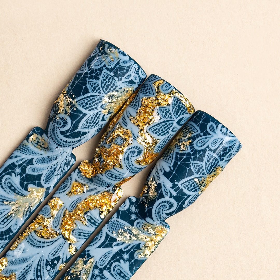 Den kan brukes over hele neglen eller i små detaljer – og enten du velger å pynte én negl eller alle, skaper du en stil som fanger blikket. Semilac-folien kan festes direkte på dispersjonslaget i hybridlakk eller base, men best resultat får du med Semilac Transfer Foil Glue.