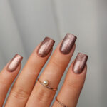 En kremet sjokoladebrun med innslag av karamell og gyllent skimmer. De reflekterende partiklene skaper et sofistikert katteøye-effekt som gir varme og dybde til manikyren.