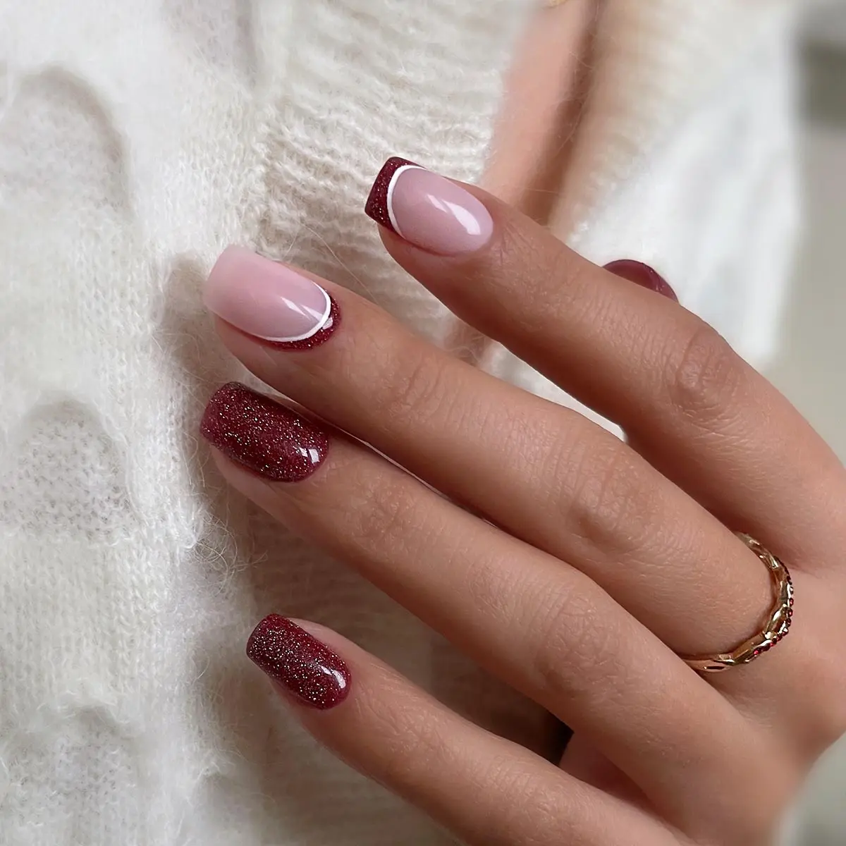 En burgunder gelélakk med hint av bronse og skjulte partikler som gir et rolig uttrykk på dagtid og en intens glød i kveldslys.