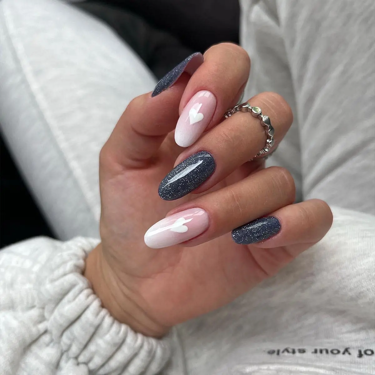 En dyp blå gelélakk inspirert av nattehimmelen. Elegant på dagtid, med et stjernedryss av glitter når mørket faller.