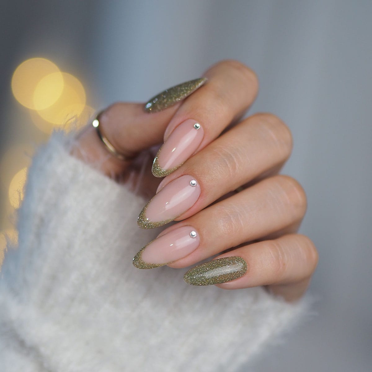 En olivengrønn gulltone med millioner av glitrende partikler. En moderne jordfarge med et luksuriøst skjær som trekker blikket uten å rope. Perfekt for deg som liker elegante nyanser med en original vri.