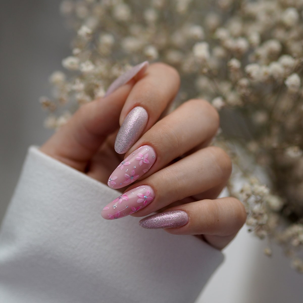 En sølvfarget gellakk med magnetiske partikler som gir en rosa glød. En feminin og sjarmerende nyanse, som fremhever personlig utstråling og passer perfekt til festlige anledninger.