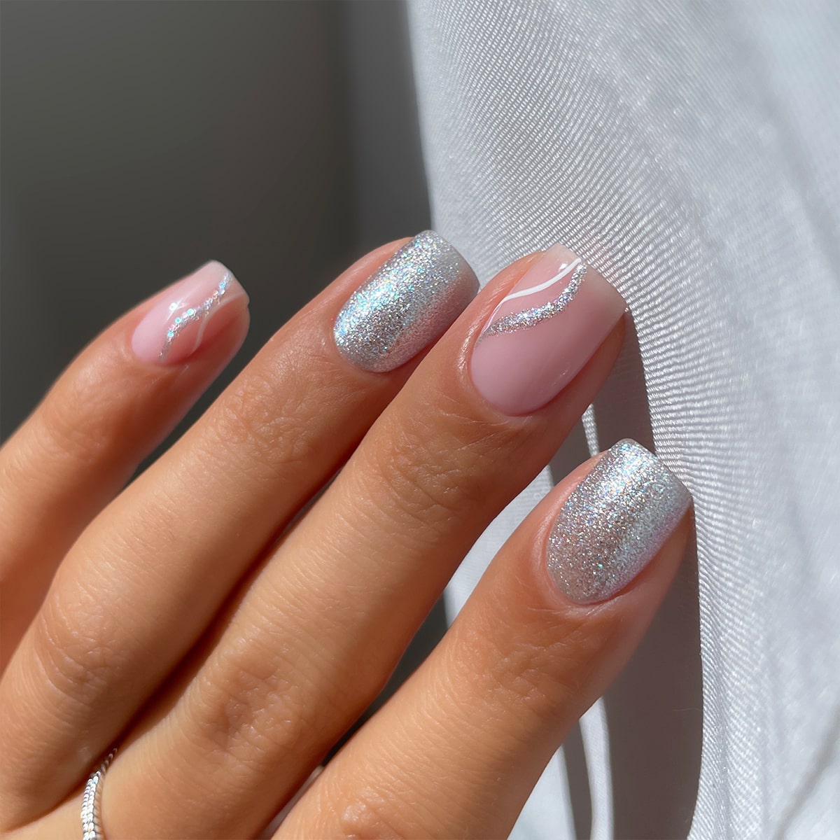 En sølvfarget gellakk med magnetiske partikler som gir en turkisblå glød. En moderne vri på “something blue”, ideell både for bruden og hennes brudepiker.
