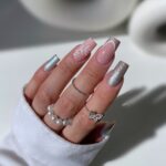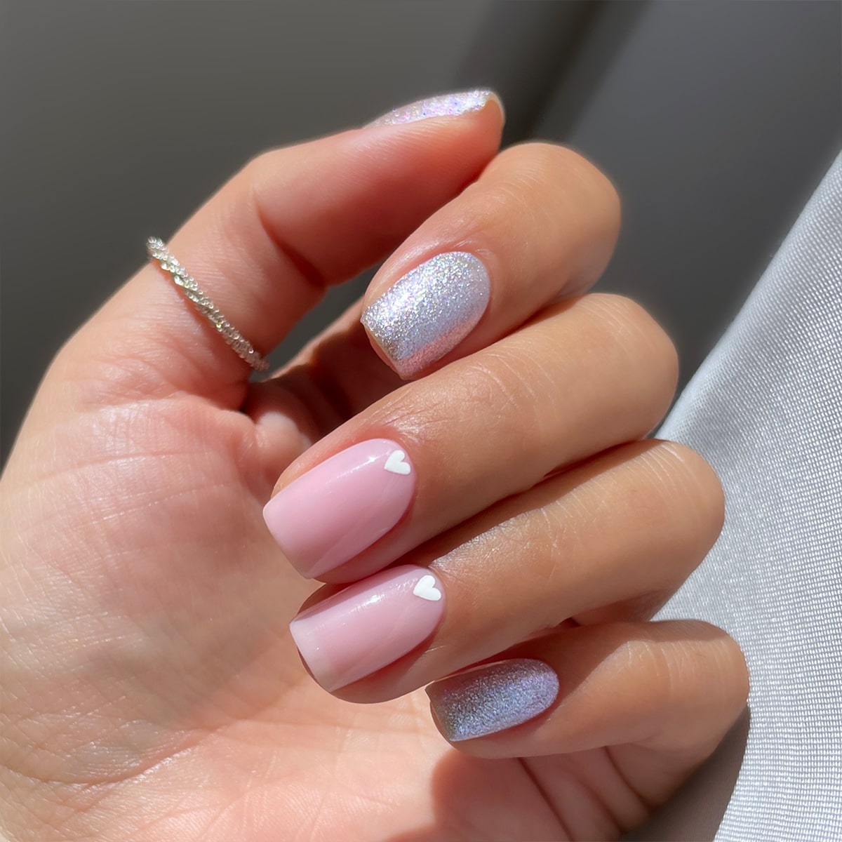 En sølvfarget gellakk med magnetiske partikler som gir en lavendelglød. Et modig og karaktersterkt valg som setter en elegant spiss på bryllupsantrekket.