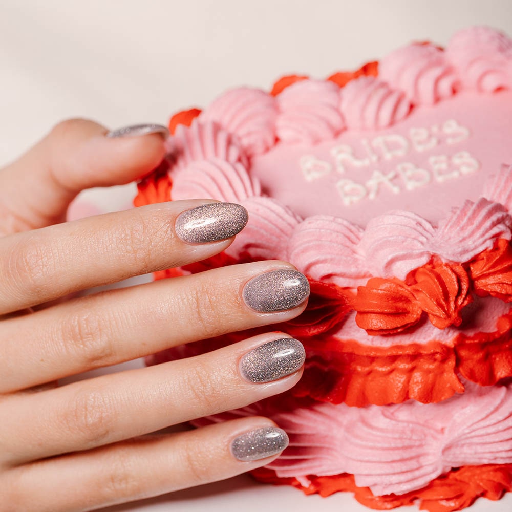 “Bride’s Babes” kolleksjonen er inspirert av utdrikningslag, vennskap og feiring – seks festlige nyanser med magnetiske partikler som gir en fantastisk glitrende finish. De unike cat eye fargene gjør det enkelt å skape den populære Velvet Nails-effekten, fra sølv med fargerik glød til sofistikert khaki og elegant grafitt.