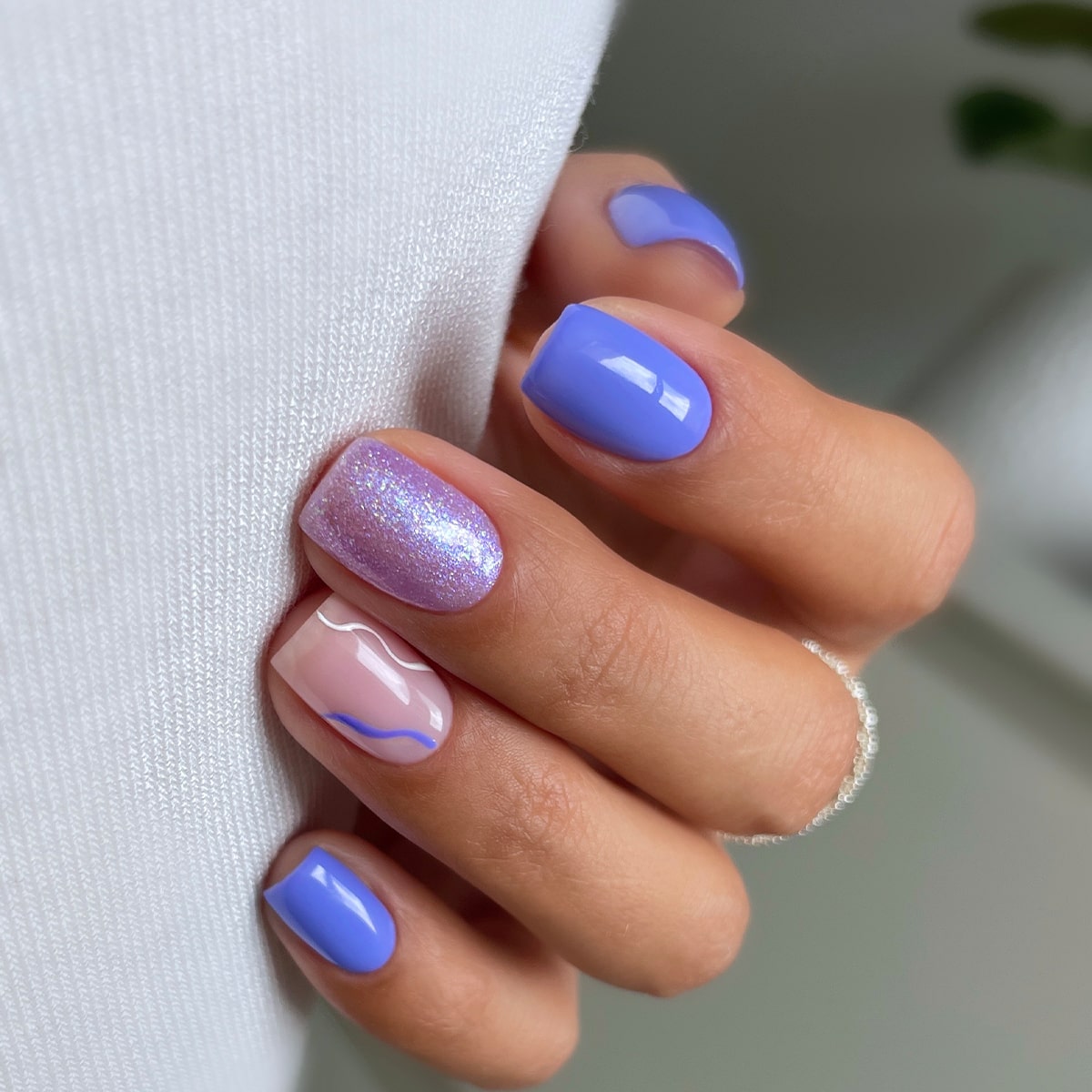 En transparent lynglilla med sølv- og fargespillende glitter. Den skifter karakter med lyset – subtil på dagen, dyp og glitrende på kvelden. En ekte festivaldrøm i fargeform.