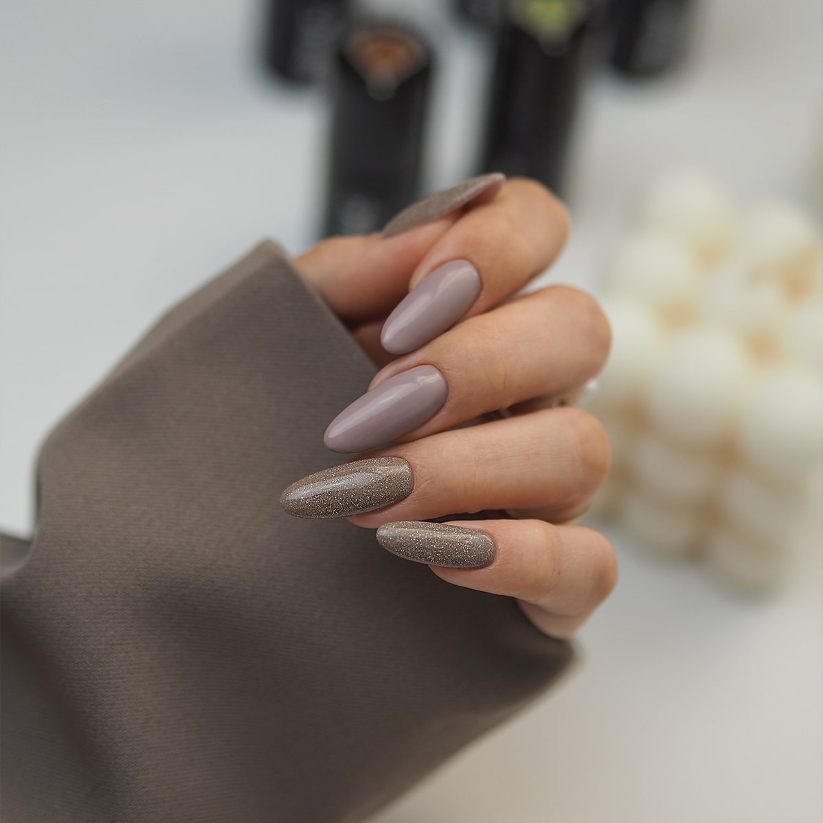 En harmonisk gråbeige med et diskret FLASH-skimmer som symboliserer indre fred og velvære. En subtil, men raffinert farge som passer til enhver anledning.