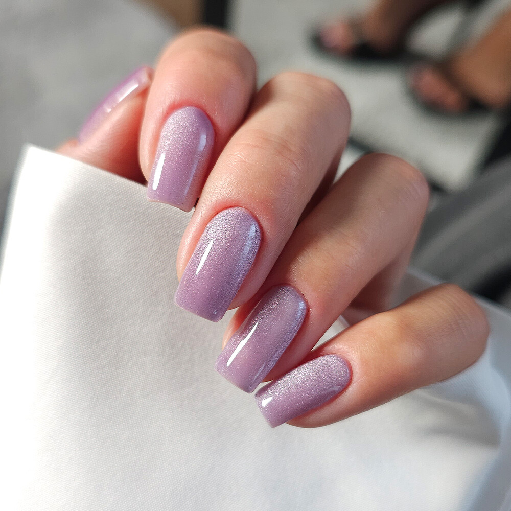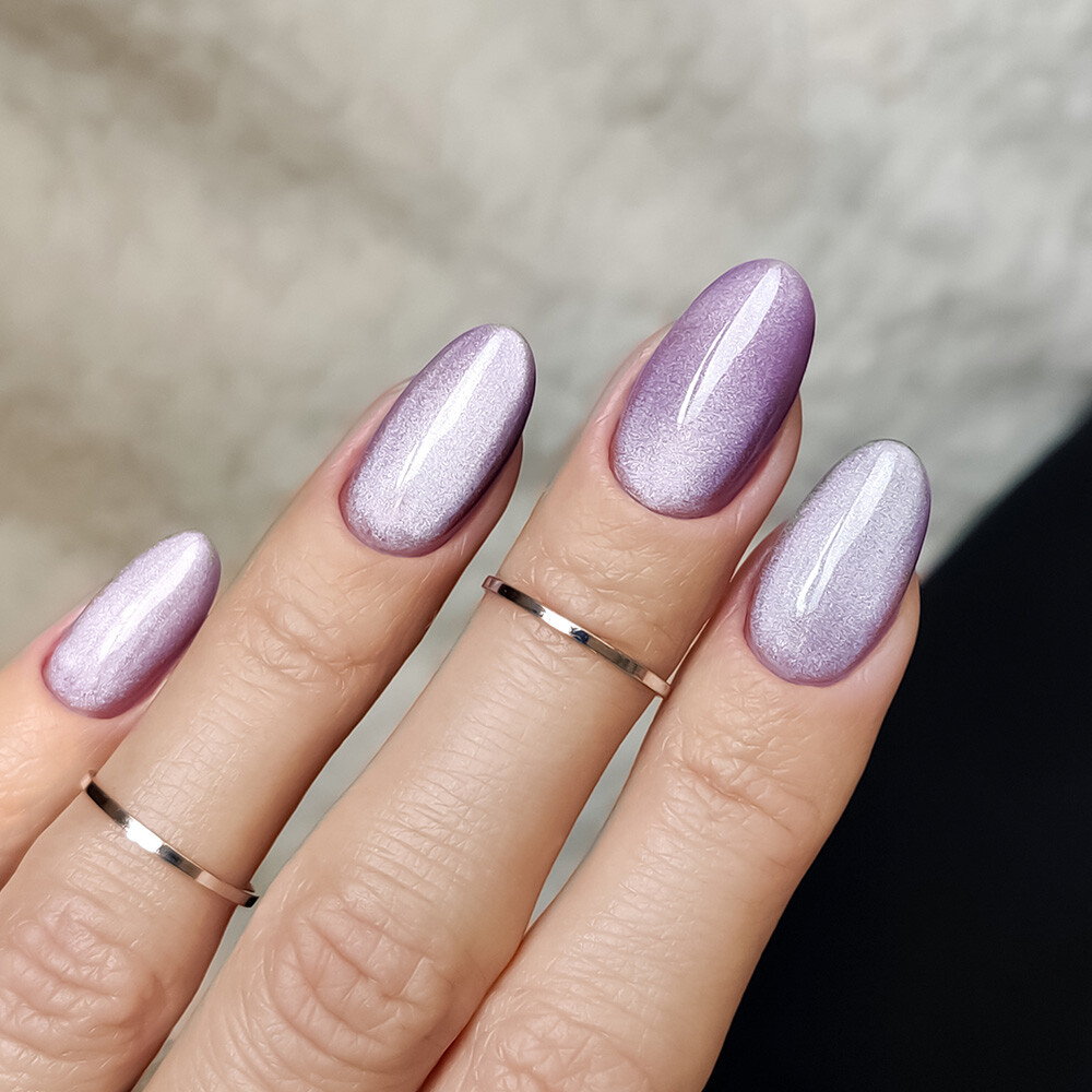 En pastell-lilla med sølvskimmer. Delikat og elegant, med magnetiske partikler som gir magiske refleksjoner og en glansfull, silkemyk overflate.