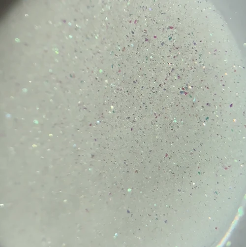 - Sukker-effekt: Dryss pulveret over mønstre laget med gelé eller gellakk før herding. Herd i lampe for å skape en holdbar, matt dekorasjon med diskret skimmer.