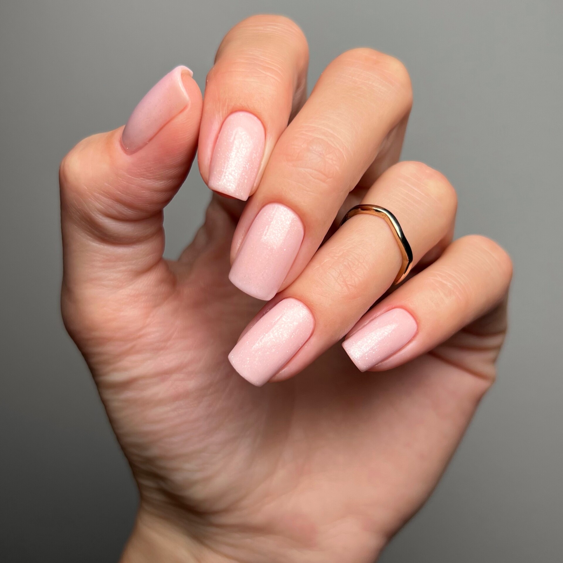 En varm, melkeaktig rosa med fine glitterpartikler som gir et mykt og feminint uttrykk. Perfekt for deg som ønsker et delikat, men strålende resultat.