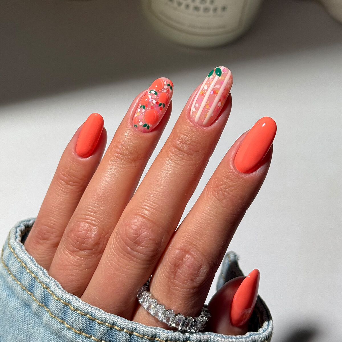 En neon koralloransje som kombinerer varme med en antydning av spenning. En sterk, uttrykksfull farge som skiller seg ut.