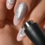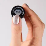 En sølvhvit gelélakk med magnetisk cat eye-effekt og glitrende partikler. Gir et tredimensjonalt og speilende vinteruttrykk.