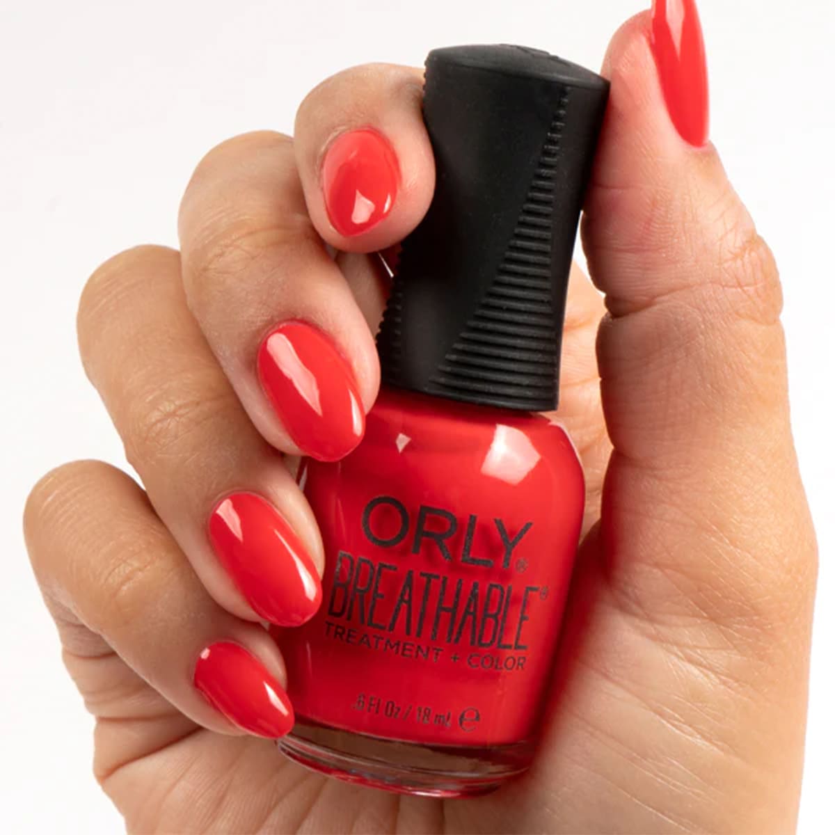 ORLY Breathable® er en pustende neglelakk som kombinerer farge og pleie i ett steg. Formelen gir et sterkere og sunnere utseende, uten behov for base og topplakk.