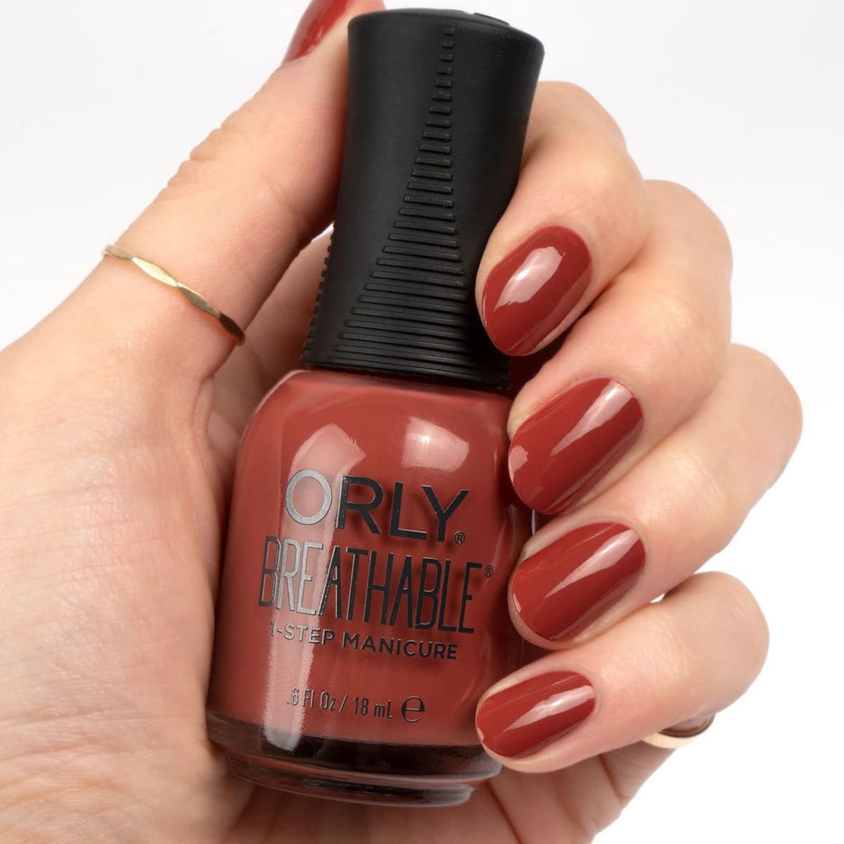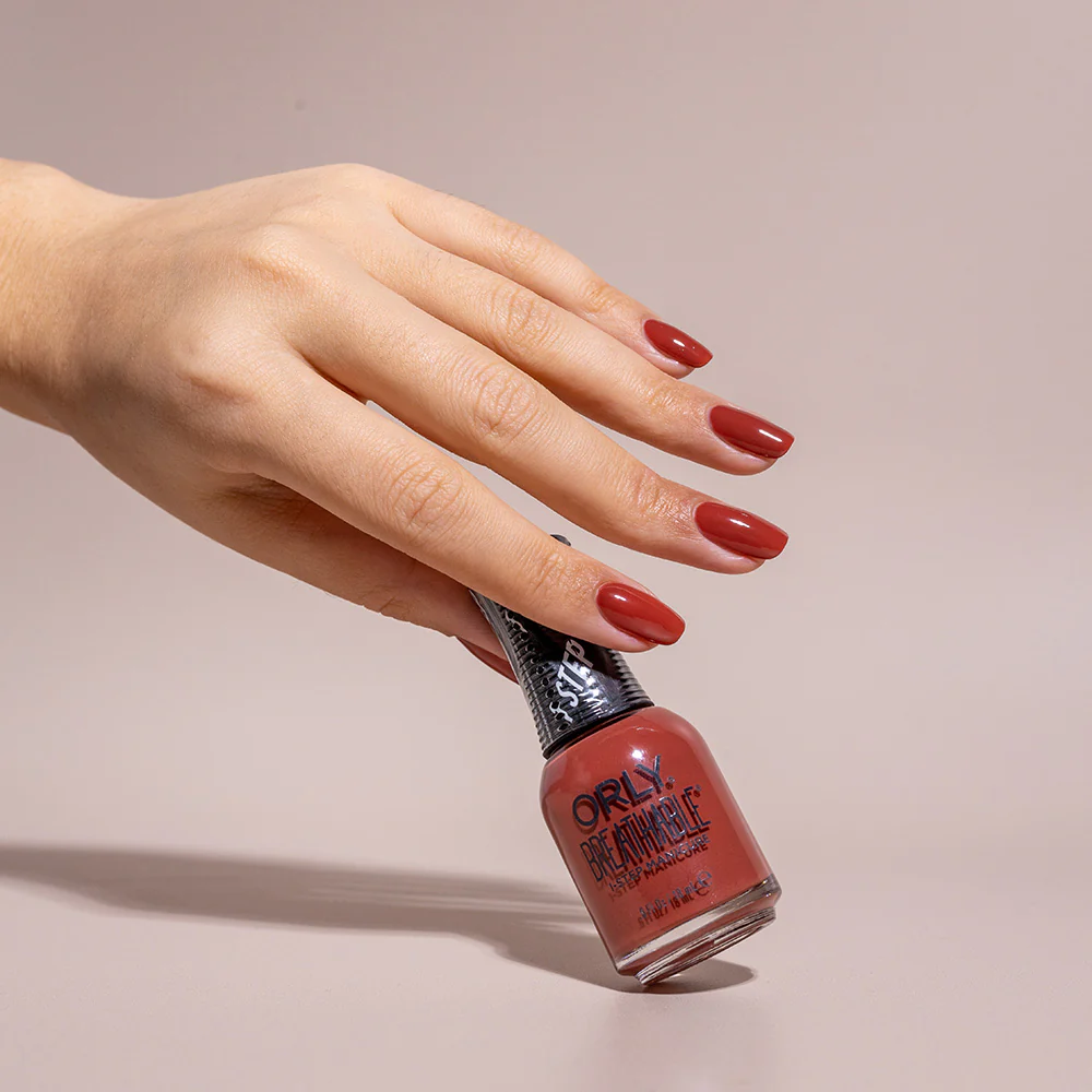 ORLY Breathable® er en pustende neglelakk som kombinerer farge og pleie i ett steg. Formelen gir et sterkere og sunnere utseende, uten behov for base og topplakk.