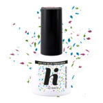 hi hybrid Top No Wipe Blue Fireworks gir en fortryllende finish med skinnende blå partikler og konfettielementer i rosa og grønt. Resultatet er en leken, glitrende effekt som tilfører dybde og karakter til både lyse og mørke manikyrer. Den er perfekt for deg som ønsker et uttrykk som både er elegant på dagen og strålende under kveldslys.