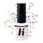 hi hybrid Top No Wipe Red Fireworks er en dekorativ topplakk til gelélakk som gir en intens og glitrende fyrverkerieffekt. Den inneholder røde shimmerpartikler kombinert med konfettielementer i rosa og grønt, som skaper et levende og iøynefallende resultat.