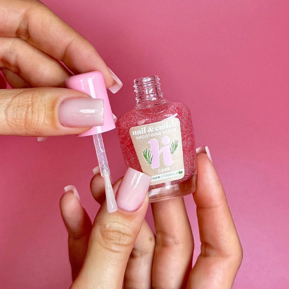En pleiende skrubb som eksfolierer og mykgjør tørre neglebånd.