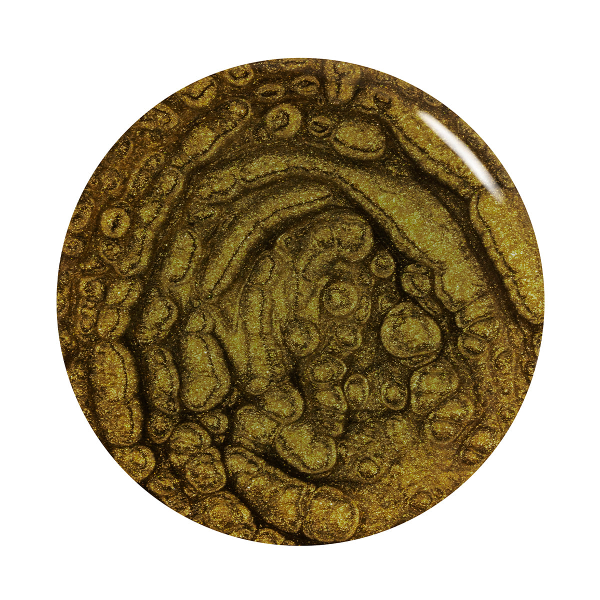 En olivengrønn shimmer neglelakk med gyllen glød – varm, dyp og raffinert.