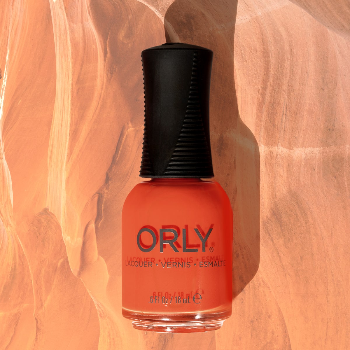 En brent oransje neglelakk med kremet finish – varm, luksuriøs og inspirert av majestetiske kløfter.
