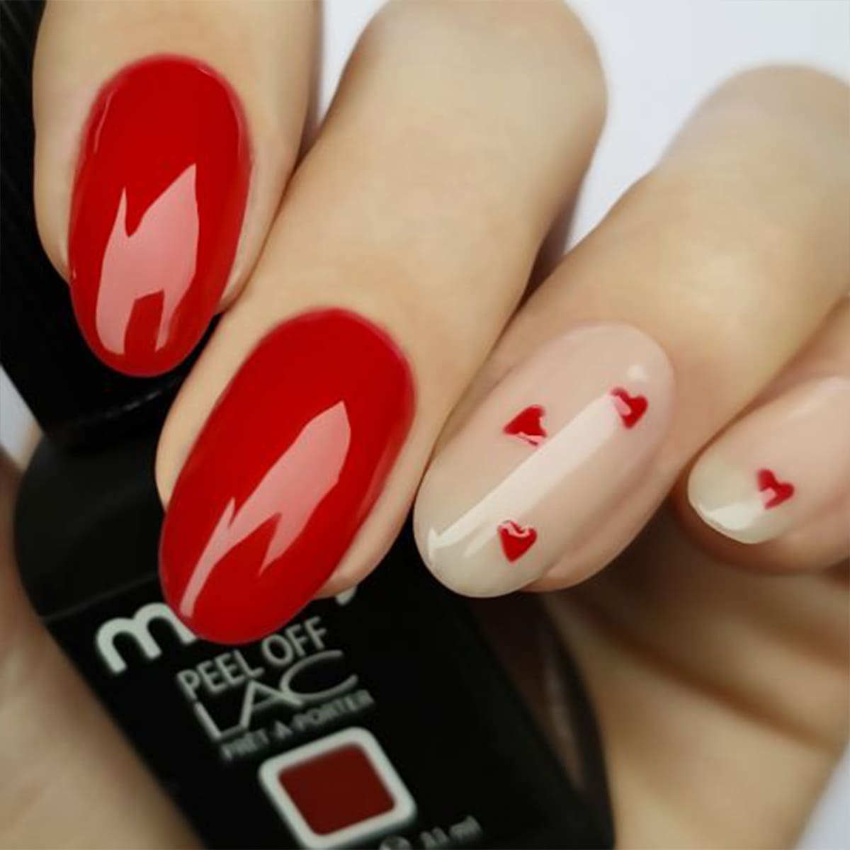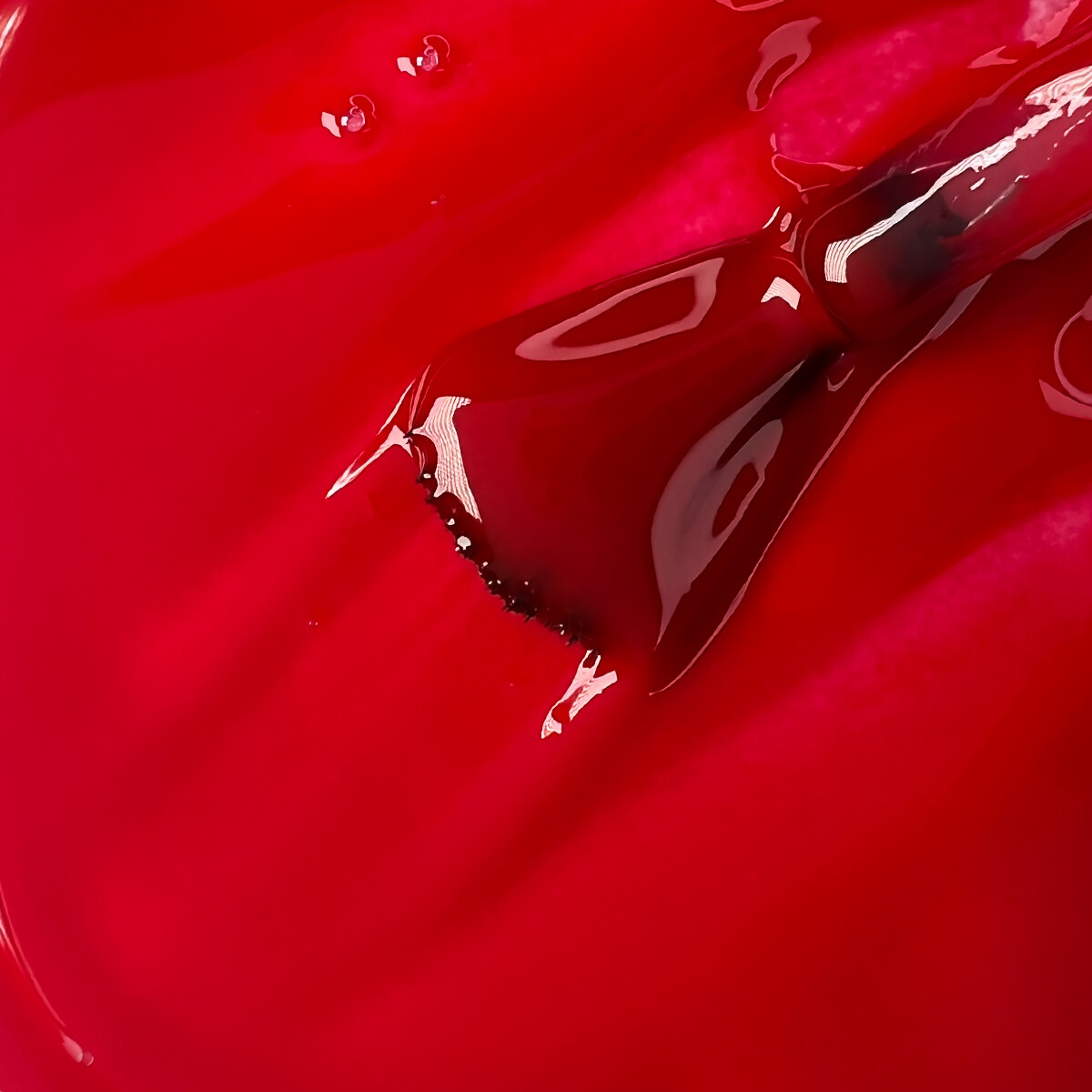 En fyldig og sensuell rød peel-off gelélakk med en livlig og energisk fargetone som gir neglene et uttrykksfullt preg.