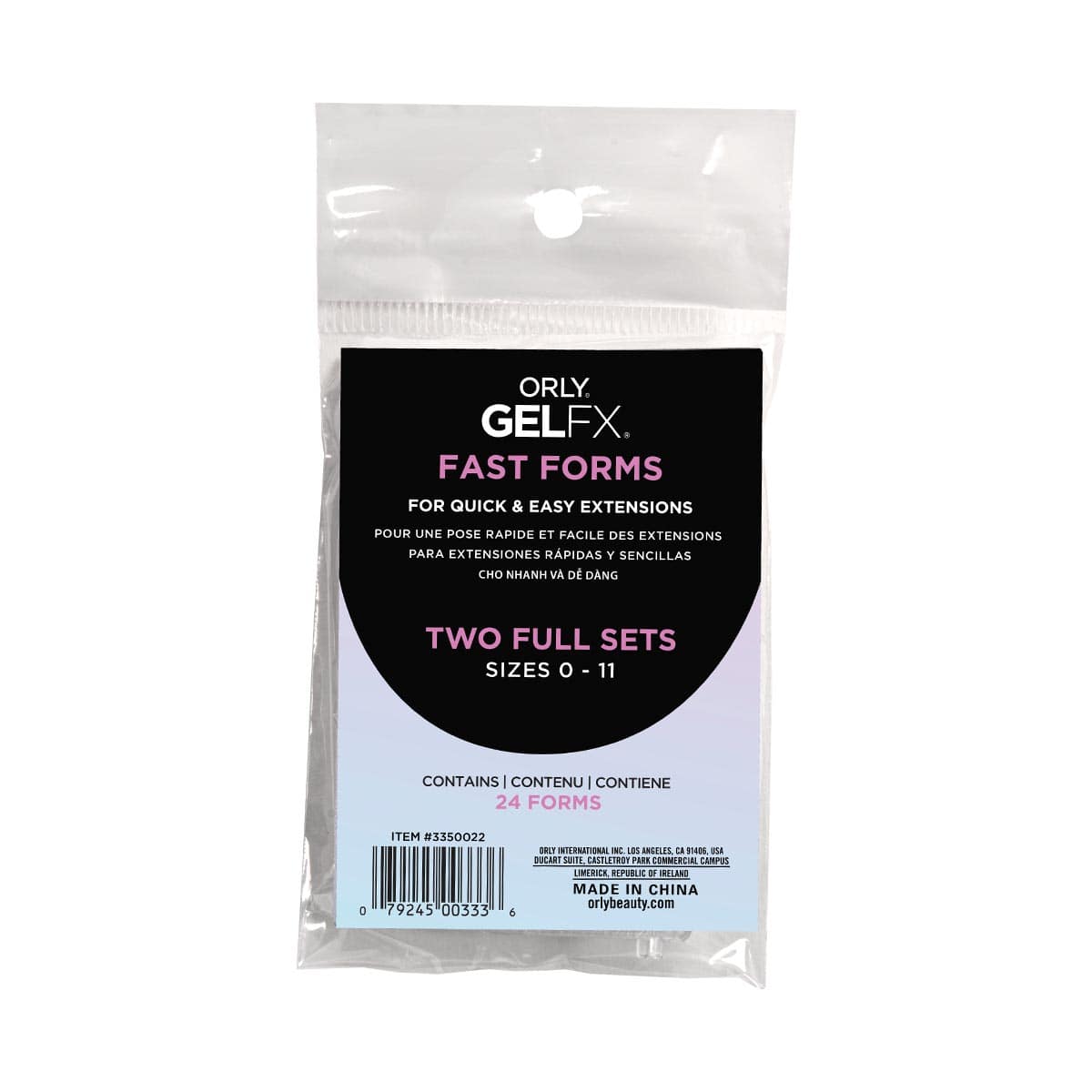 ORLY Fast Forms er utviklet for å gjøre negleforlengelser raskere og enklere. Med 12 størrelser å velge mellom kan du skreddersy lengde og form etter kundens ønske. Formene brukes sammen med Builder In A Bottle for å bygge en jevn og presis struktur, og fjernes enkelt når produktet er herdet. Resultatet blir en jevn, feilfri forlengelse – selv for teknikere med mindre erfaring.