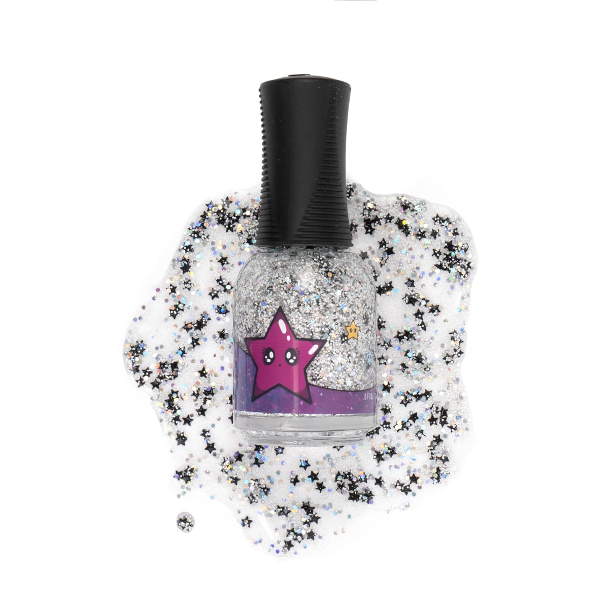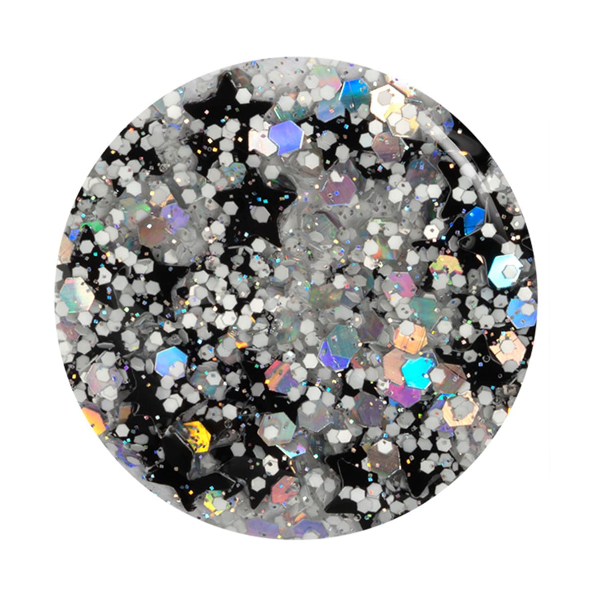 · Kelli’s Constellation – Holografisk Glitter med Grå Konfetti og Svarte Stjerner