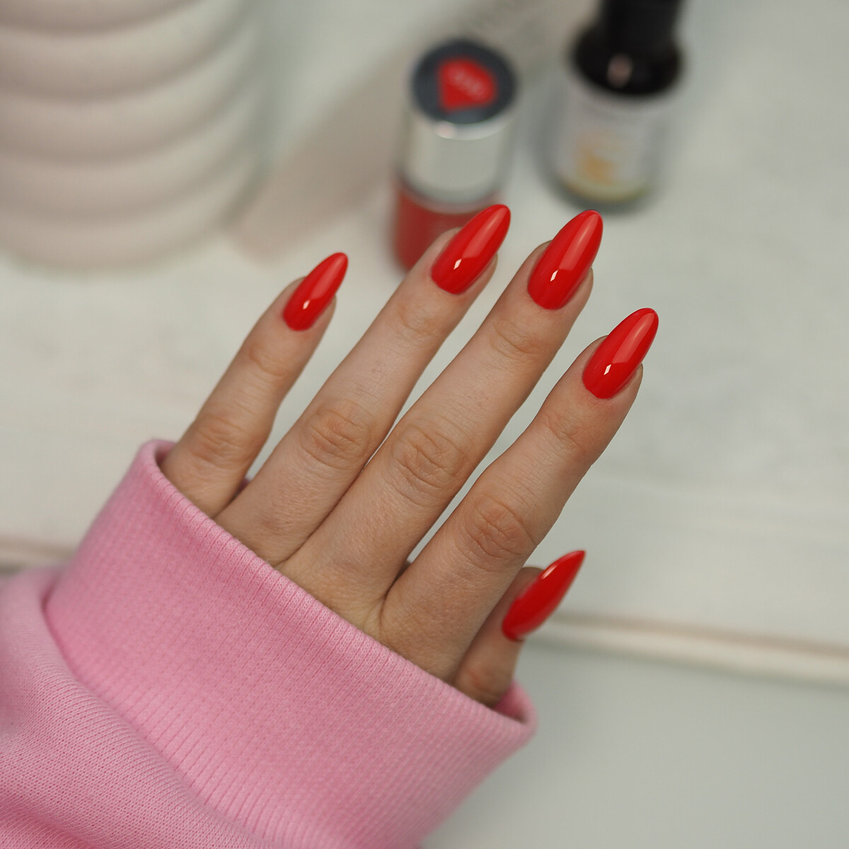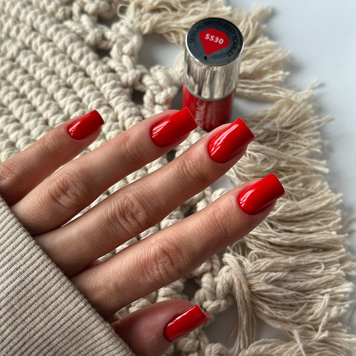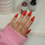 En klassisk skarlagensrød nyanse med intensitet og glød. Et tidløst valg som gir manikyren et elegant, feminint og markert uttrykk.