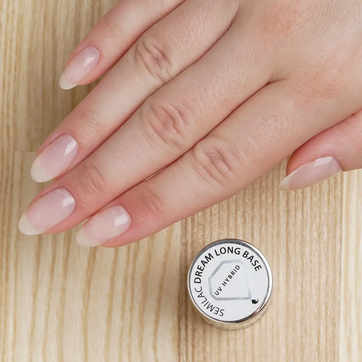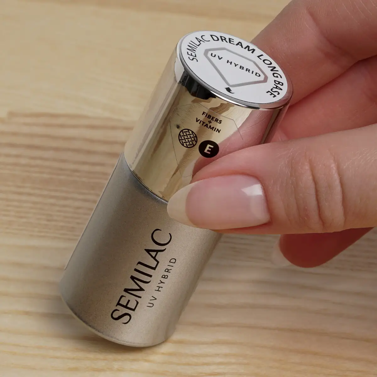 Semilac Dream Long Base er en pleiende og byggende base som støtter neglenes vekst og styrke på flere nivåer. Formelen inneholder en høy konsentrasjon av nylonfibre og vitamin E, som bidrar til å styrke, beskytte og forhindre sprekking.