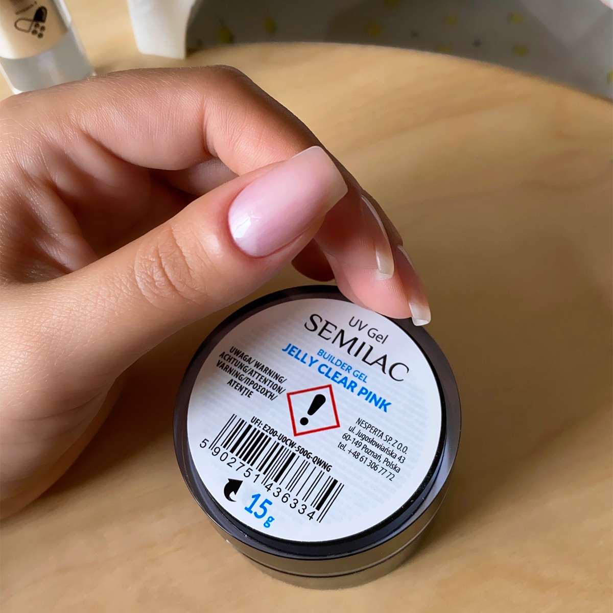 En builder gel med geléaktig konsistens som kombinerer de mest etterspurte egenskapene for komfortabel og holdbar negleforsterkning. Dette er den hardeste builder geléen i Semilacs sortiment, og gir neglene en delikat lyserosa tone.