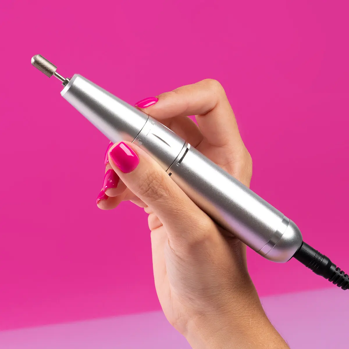 Den innebygde batteriet på 2000 mAh gir opptil 8 timers trådløs bruk, og kan enkelt lades via USB. Med digital hastighetsjustering opptil 30 000 RPM og stille, vibrasjonsfri drift, får du en jevn og behagelig arbeidsflyt både ved forberedelse av negleplaten, arbeid rundt neglebåndene og fjerning av produkt.