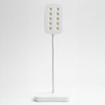 Lampen har en stabil base som står stødig på arbeidsbordet, samt en fleksibel stang som kan justeres fritt for maksimal arbeidskomfort.