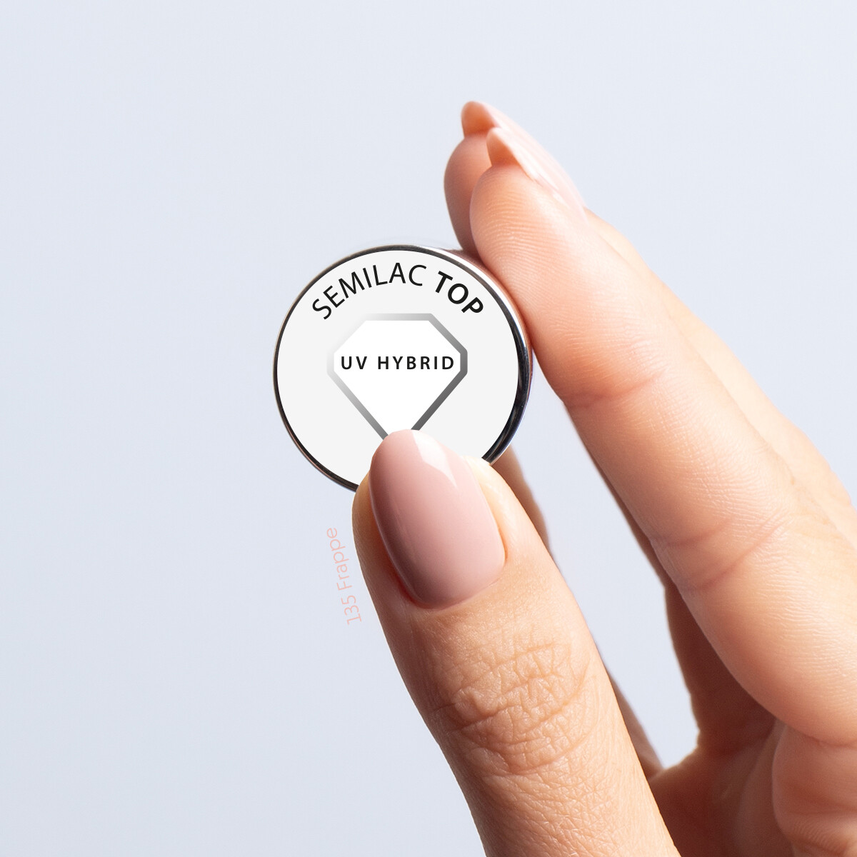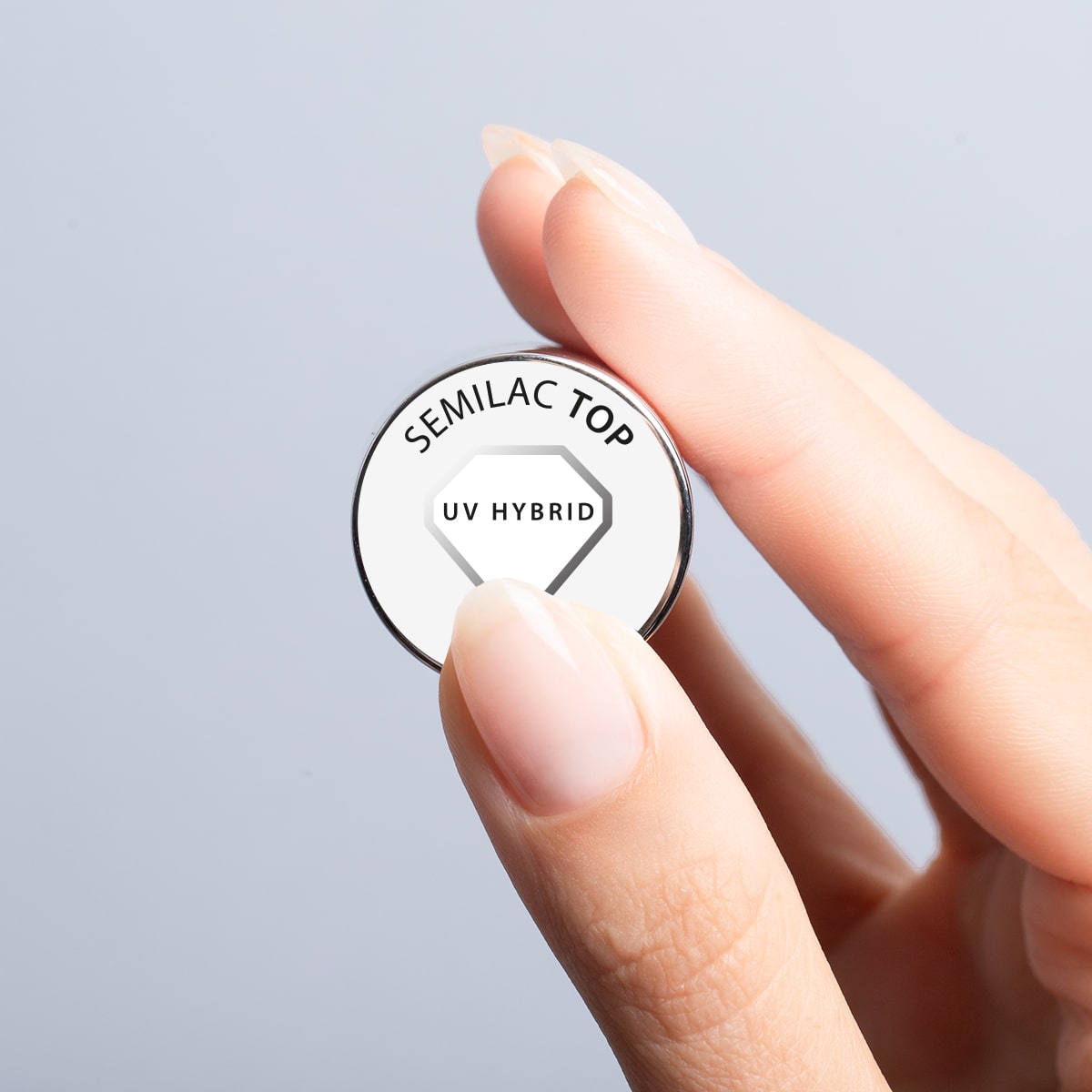 Semilac Top er en universell topplakk som gir en jevn, glansfull overflate og forsegler enhver manikyr. Den beskytter fargen mot riper og mekanisk slitasje, samtidig som den tilfører et elegant, langvarig glanslag.