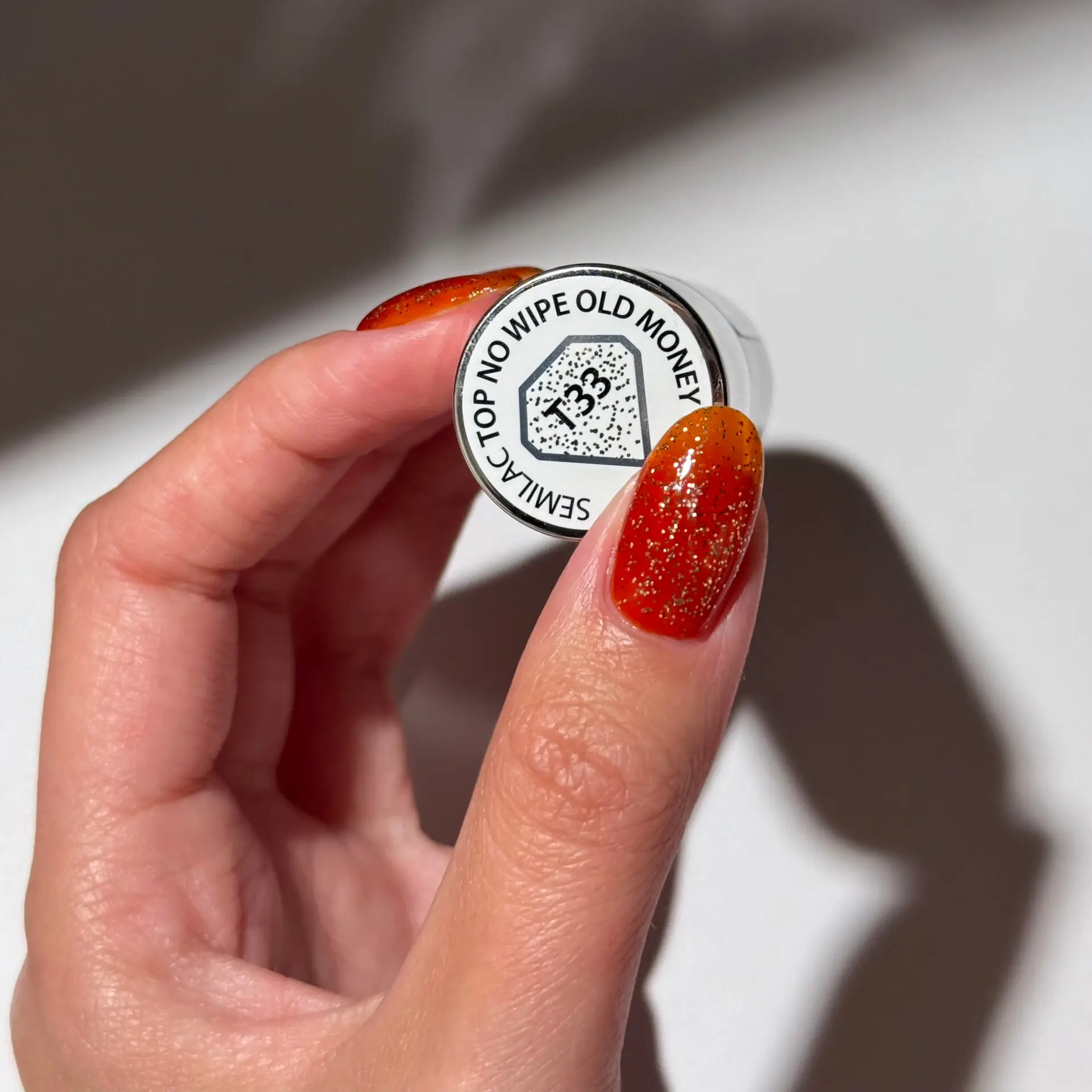 Semilac Top No Wipe Old Money er selve definisjonen av tidløs eleganse. Den transparente formelen er beriket med gyllent shimmer og fine flak som gir manikyren en sofistikert glød uten å virke overdrevet.