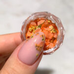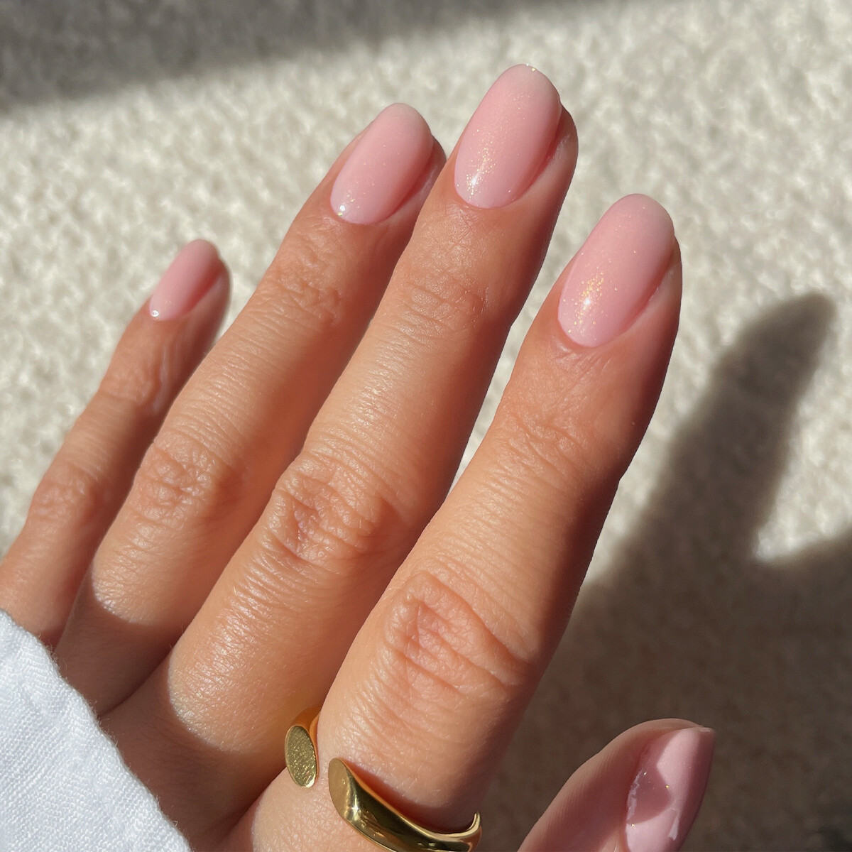 En varm ferskentone med innslag av gyllent glitter som fanger lyset vakkert. Gir neglene en solkysset glød med et elegant skinn. Ideell for sommerlige, lekre manikyrer.