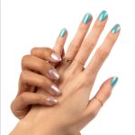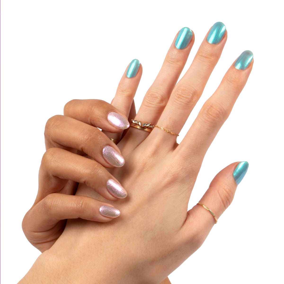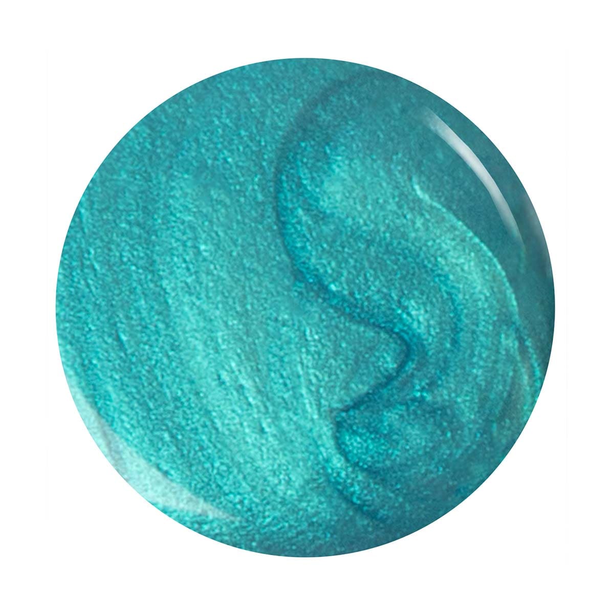 En tealblå shimmer med kjølig undertone og lett metallisk glans som gjenspeiler havets dyp.